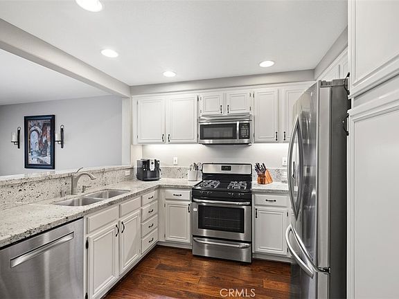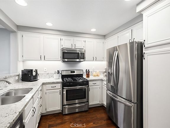 Welcome home to this well cared for 3 Bedroom 2 1/2 townhome with a 2 car direct access garage. You'll enjoy relacing in the private fenced in front yard that faces west to enjoy the afternoon sunset views through the hills. Wonderfully appointed home with an open floorplan. The Kitchen features Granite counters, stainless appliances and white cabinets. Downstairs enjoys rich warm wood flooring throughout. Tall 9ft ceilings and plenty of recessed lighting. The living room includes an inviting fireplace and therer is a seperate dining area and breakfast bar seeting for 2. Three upstairs bedrooms inlcude a Primary suite with a walk in closet with built in organizers, dual vanity sink and a larger tub with shower. The 2 secondary bedrooms include mirrored closet doors. Upstairs includes warm tone laminate flooring in all rooms. Laundry area is conveniently located upstairs. All rooms are painted with designer colors including white ceilings. Direct access 2 car garage. Located on a cul-de-sac street. Front yard includes cement patio area and synthetic grass. Ladera Ranch includes many parks, water features, trails, shopping, dining and award winning schools.