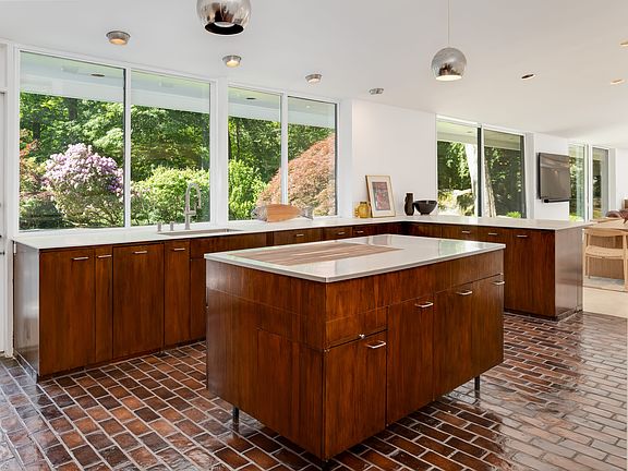 Fully Renovated Mid-Century Estate with California Cool Elegance! Thoughtfully and thoroughly renovated to meet the needs of todays most discerning buyers, this one-of-a-kind contemporary estate seamlessly blends modern luxury with timeless mid-century integrity. Privately nestled on 3.34 serene acres just minutes from town, this architectural gem offers the perfect combination of privacy, sophistication, and style. Designed for effortless one-level living, the interior is flooded with natural light from walls of glass that create a seamless connection between indoor and outdoor spaces. Enjoy high ceilings, flexible living areas, and luxury amenities including a sparkling pool, tennis court, and expansive outdoor entertaining spaces.Inside, you'll find a sunken great room with fireplace, a chefs kitchen with brand-new appliances, a cozy study/5th bedroom with original built-ins and multiple stylish living areas. The private primary suite is a true retreat, boasting two brand-new bathrooms and dual walk-in closets. Additional accommodations include a guest suite w/ new bath, two bedrooms and a newly renovated hall bath. Just 30 minutes from Manhattan, this rare offering combines impeccable design, tranquil surroundings, and turnkey convenience. Landscaping, pool care, and snow removal are all includedeasy, elevated living in a fully renovated home that honors its architectural roots. 2025-06-05