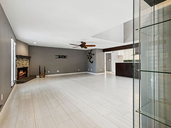 Wood-burning fireplaceSleek finishesSports courtLaminate flooringLarge backyardStainless steel appliancesQuartz countertops