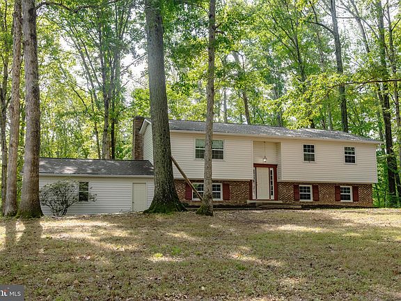 PROFESSIONAL PHOTOS TO COME!!! Welcome to your peaceful retreat in Rose Hill Farms! This light-filled split-foyer sits on 1 acre of trees and privacy and features 4 bedrooms & 3 full baths across 2,278 sq ft. The main level offers open living/dining, an updated kitchen, and access to a large deck overlooking nature. Downstairs, a spacious family room with wood-burning fireplace & stove insert is perfect for movie nights, plus a true 4th bedroom, full bath, laundry, and walk-out. Oversized 2-car garage, ample storage, and plenty of parking. Minutes to shopping, commuter routes, Quantico, and more—quiet, convenient, and move-in ready! LOCK BOX HANGING BY THE BACK DOOR (key is for the back door only)