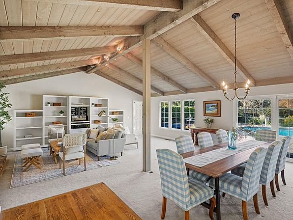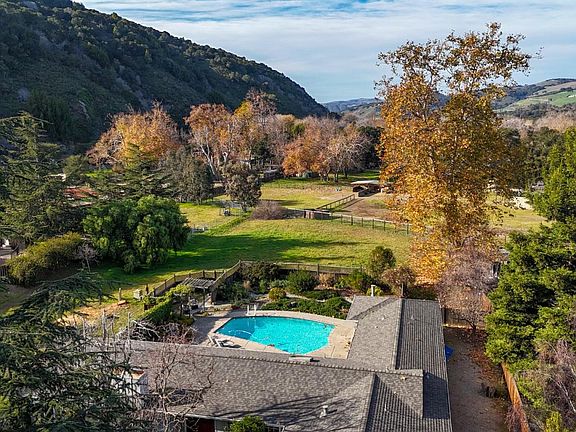 Welcome to this warm and inviting California Ranch-style home, perfectly situated on a flat, usable acre in sunny Carmel Valley. Just minutes from world-class dining, wineries, and top-rated schools, this single-level gem offers the ultimate blend of tranquility and convenience. Step inside to discover a thoughtful layout with the primary bedroom and living room on one end, and three additional bedrooms, an office space, and a family room on the other. The living room has vaulted ceilings, a cozy fireplace and a large dining area. The kitchen is spacious, and has an eat-in area and tons of storage. The primary bedroom suite has high ceilings, gorgeous views of Garland Park, a spacious walk-in closet and direct access to the private patio and pool. Numerous patio doors, skylights and windows create an inviting atmosphere that brings the beauty of the outdoors in. World-class hiking and horse riding trails are just outside your door. Whether you are savoring a glass of wine while watching the spectacular sunsets on the expansive patio, taking in the sweeping views, or simply soaking up the sun in your private pool, this home is a true sanctuary. Come see why everyone loves the friendly Carmel Valley Village!