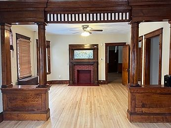 Discover modern living in this spacious 3-bed, 1-bath apartment featuring a chic open floor plan, refinished hardwood floors, and freshly painted walls filled with natural light. The large eat-in kitchen is equipped with brand-new stainless steel appliances, including refrigerator, oven, microwave, washer, and dryer. Ample storage is provided with deep closets and plenty of cabinetry, while a decorative fireplace and Roman columns add timeless charm to the living area. The updated bathroom offers sleek fixtures and finishes, and residents can enjoy the shared outdoor space as the warmer months arrive. Centrally located, this home blends style, convenience, and comfort schedule a viewing today! Tenant pays Firts, Lasts, Security. 12 Month Fixed Lease