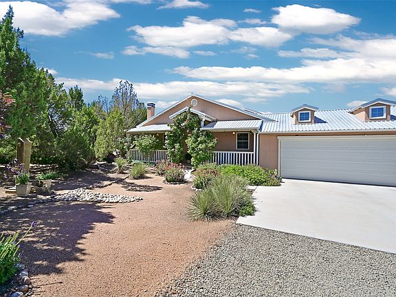 Welcome to 3 Vista Lagunitas: A classic old world style home that truly is set apart from the rest. The builder of this 3 bedroom 2.5 bath custom-crafted home originally built it for himself and it shows. From the vaulted wooden ceilings and custom-fit trim molding, to the choice solid wood doors throughout the home, you will find unparalleled quality at every corner. The northern New Mexico style exterior blends in well amongst the mature Juniper and Pinon Trees that populate the spacious and private 1.155 acre lot. You’ll enjoy the best of outdoor living underneath the shady portal spaces and the established gardening locations are a joy to be had. What a fantastic opportunity to own a beautiful home in such an ideal setting. This is the dream home you’ve been waiting for!