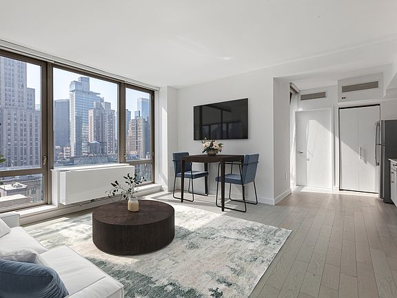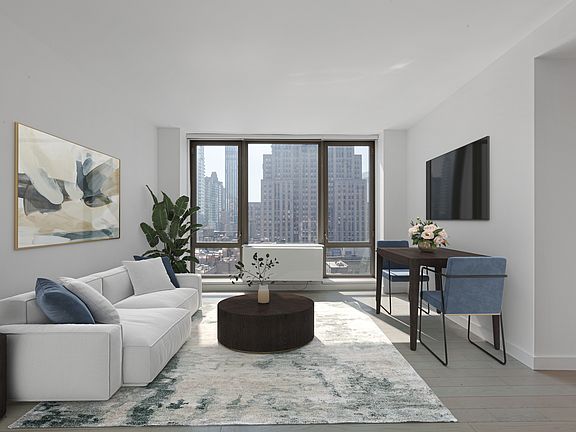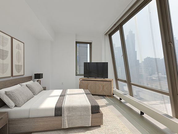 Wake up to breathtaking Empire State Building views in this spacious 1-bedroom, 1-bath home at Greywood. Featuring floor-to-ceiling windows, an oversized living/dining area, queen-size bedroom, a sleek kitchen with stainless steel appliances, in-unit Bosch washer/dryer, and a windowed spa-like bathroom.