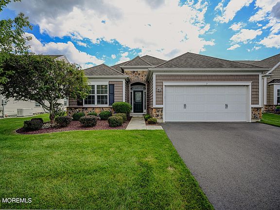 Welcome to Equestra, the highly desirable and premier resort style 55+ community located in Farmingdale! This Lassiter Model Ranch home features 3 bedrooms with bonus room in primary bedroom, spacious living room with natural light is perfect for gatherings, 2 full bathrooms, open concept beautiful kitchen w/ granite counter tops, plenty of storage - perfect for everyday living or entertaining ! Sliding doors in kitchen leads to an outdoor paver patio that is ideal for barbecuing, gardening, relaxing or enjoy being in the shade with the option of the retractable motorized awning! A full home Generator included. Enjoy the amenities of this community - a grand clubhouse, planned social events, fitness center, pickleball/tennis courts, indoor/outdoor swimming pools, walking paths & more ! Close to Garden State Parkway, Shopping, Restaurants and Jersey Shore beaches !