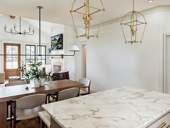 Huge islandBarndominium with farmhouse aestheticsSplit bedroom designPantry around the cornerLarge open kitchen