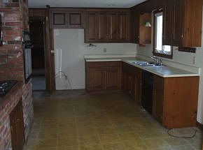 Country Ranch with wide pine floors throughout, fireplace in Living room, country kitchen with bee-hive oven and cooking area. 2 finished rooms,woodstove + 3/4 bath in walkout lower level. House needs some TLC/refinishing. Large deck and screened porch overlook private yard with fruit trees.