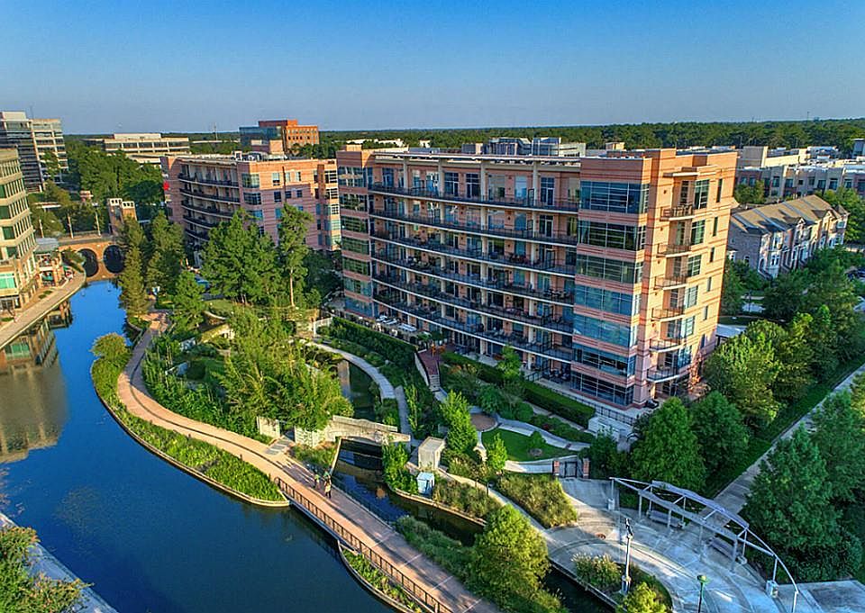 Fantastic corner unit at the Waterway Lofts on The Woodlands Waterway in the Heart of downtown! This one is extremely unique in that it has a huge wrap around veranda and it's own private entrance to the community pool. This meticulous seller has pampered this home and added many recent updates. It was featured in a magazine by Cantoni furniture and the seller would be willing to sell the furniture since it was designed for this unit. You can literally walk to everything in Town Center!