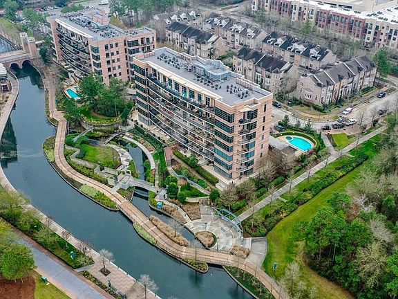 Luxurious condo overlooking The Waterway in the heart of Town Center. Walking distance to world-class entertainment at The Pavilion, vibrant nightlife, premier shopping and dining at Market Street and The Woodlands Mall, and lush outdoor green space. Desirable features include wood-look tile flooring, a study, wall-to-wall windows in the oversized living room, and an extended private terrace from which you can experience al fresco dining while watching the sun set over the waterâs banks. The chefâs kitchen includes granite countertops, tile backsplash, stainless steel appliances, and breakfast bar. Escape to the impressive primary suite with a private laundry room, walk-in closet with built-in shelving, separate vanities, and glass shower. Waterway Lofts truly has it all. Two parking spaces, storage space on the 2nd floor, swimming pool, grilling area, party room/meeting space, direct access to miles of walking and biking paths, and a peaceful Zen Garden with a koi pond.