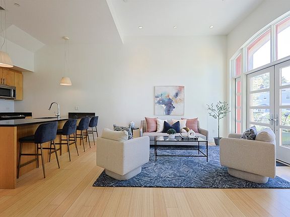 What used to be a former Victorian era fire station is now a beautiful two bedroom duplex condo. Newly repainted and stylishly staged, this home offers all of the modern conveniences while also feeling cozy and private. The open floor plan - consisting of a large living room with french doors leading to an awesome patio - allows for great entertaining. The kitchen has plenty of counter and prep space, with an island big enough to accommodate four bar stools. There is an abundance of natural light due to the soaring ceiling height and massive arched windows. Head upstairs to the primary and guest bedrooms - both with new wall-to-wall carpet along with double closets - a full tiled bathroom, and in-unit laundry. Rounding out this excellent condo is a deeded parking space and storage in the basement. Centrally located to shops, the grocery store, bakeries, the commuter rail, playgrounds, and green spaces, this home is not to be missed! Easy to show.