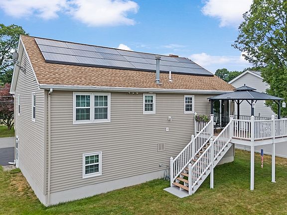 Welcome home! This move-in-ready, well-cared-for 3-bedroom split-entry offers space, comfort, and convenience. The main level features a cozy gas fireplace, a living room, a dining room with sliders leading to a covered deck overlooking the fenced yard, an eat-in kitchen with ample cabinetry, two bedrooms, and a full bathroom. The finished lower level boasts a bright family room with large windows, a private third bedroom, and a half bath—perfect for guests or a home office. Extras include an attic with flooring for storage, a large shed, a covered porch, and an attached garage for easy access in all weather conditions. The house features solar panels to help reduce electricity costs. Centrally located, just minutes to Route 495, Tuscan Village, shopping, dining, and medical facilities. Don’t wait—make this home yours today!