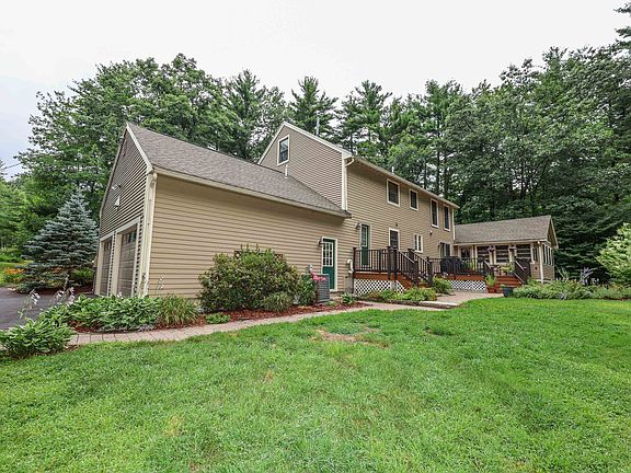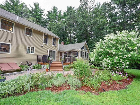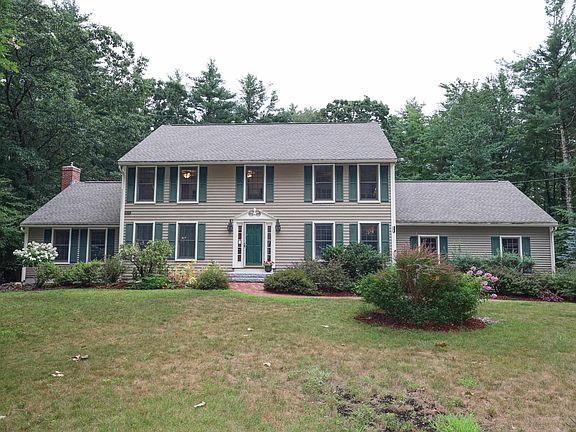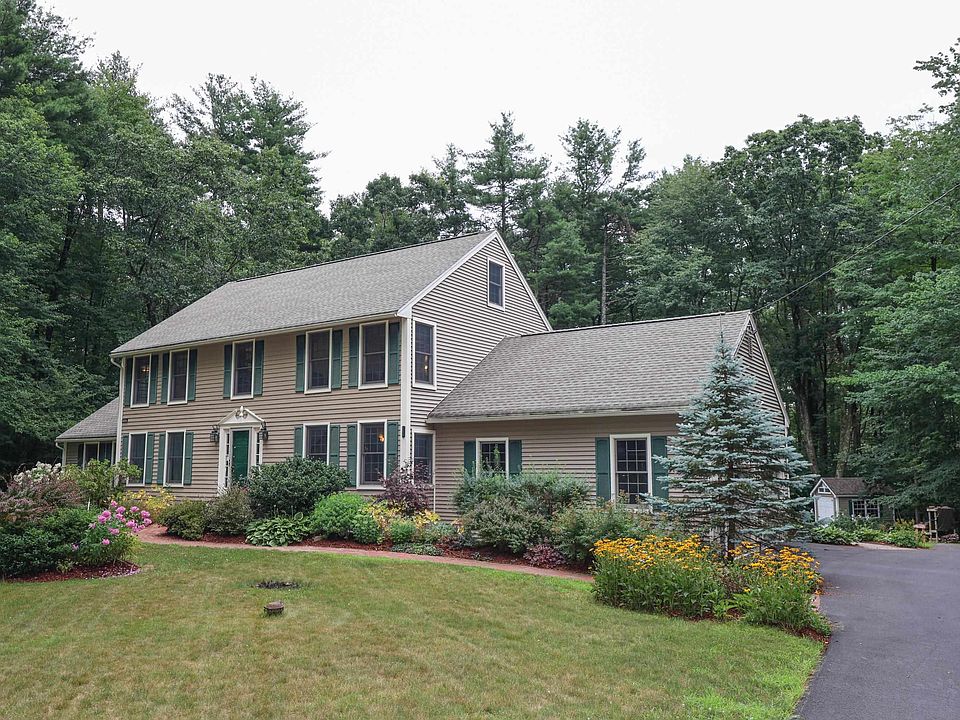 This pristine colonial, located in picturesque Brookline, NH, is located on over a 4.5 acre lot in one of the top ranked school districts. The yard is garnished with curb appeal, from mature gardens to attractive landscaping. On the main floor you'll find hardwood floors throughout the dining room and living room. The timelessly finished kitchen is equipped with stainless steel appliances and ample cabinet space. Love to entertain? The kitchen flows effortlessly into a massive cathedral living room. From here open the doors to an incredible wood lined 3 season room with newer windows, dimming lights and a ceiling fan for comfort. A 1/2 bath and dedicated laundry area round out this level of living. Upstairs contains 3 bedrooms, a full bathroom, and a primary suite with walk in closet, a full bath with air jetted tub, tile shower, heated floors and heated towel racks. Need more space? The basement is partially finished and a great space for a gym, hobby room, etc. Two car garage, reeds ferry shed and a freshly finished back deck- You need to see it to believe it! Schedule a private showing today!