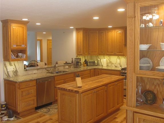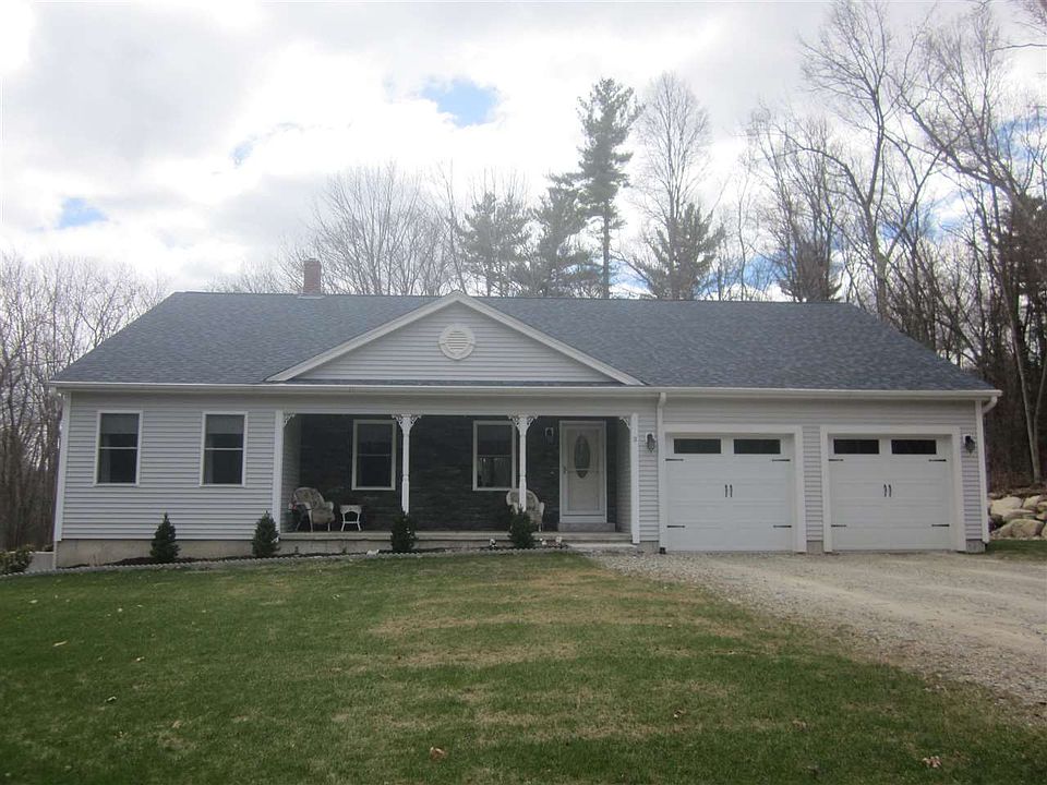 This stunning custom ranch has only been lived in for a year so it looks and feels like brand new. This house was lovingly designed by the current owners and has so many upgrades and unique design elements like the enormous custom Oak kitchen which boasts Granite counter tops a large custom island with Butcher Block top a built in lighted hutch and an additional Butler's pantry with an extra Fridge and a wet bar adjacent to the glorious composite deck which overlooks a pristine private pond, just perfect for entertaining. Enjoy the gleaming sea of Hickory Hardwood floors and the Master Bedroom with a gigantic walk-in closet and an En-Suite with his and her Granite sinks.The lower level has full daylight windows French Doors two furnaces, one wood one Gas and an enormous finished family room. All this on over 4 acres of private wooded tranquil land minutes to to 93.
