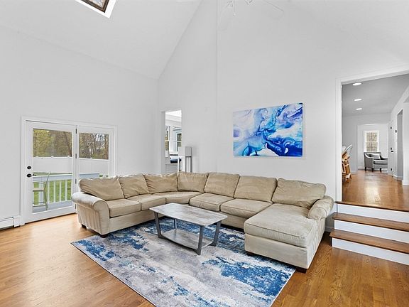 Back on market due to home sale contingency, this home is a MUST SEE! This stunning 4-bedroom, 3.5-bathroom home offers nearly 3,000 square feet of living space on a sprawling 1.44-acre lot in a peaceful cul-de-sac. Inside, the living room has soaring cathedral ceilings and large picture windows, filling the space with natural light. The open-concept kitchen boasts granite countertops, stainless steel appliances, a center island with extra seating, and a built-in eat-in area with a custom bench seat. The primary suite has a walk-in closet, a full bathroom, and a private deck. Two additional generously sized bedrooms share a full hallway bathroom. The exterior features a brand-new front patio, large back deck, a three-season porch, and a massive fenced backyard. Also includes a two-car garage, a full basement, and a versatile space above the garage with a bedroom and full bath, ideal for a gym/office/guest suite. Close to downtown Hingham, the commuter rail, and East Elementary.