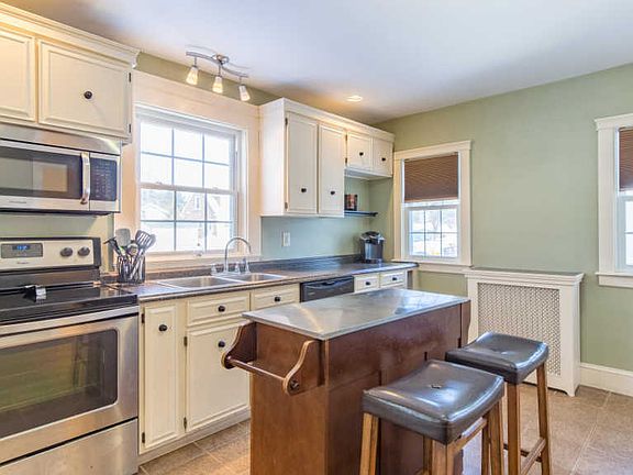 This beautiful 4 bedroom, 1.5 bath Colonial is move-in ready! A gorgeous kitchen including newer appliances you'll find it a pleasure to cook & entertain guests. The home flows nicely with the naturally lit dining room, wrapped in large new windows with French doors to the back deck. There are hardwood floors throughout the first floor. Enjoy the private side deck off the living room with a European villa feel. Plenty of room on the second floor with 4 bedrooms, quaint master bedroom, and updated full bathroom. Lower level is partially finished with family room set up for TV, games, bar, along with a separate laundry area. Newer forced hot water heating system and 1st floor windows are just a few of the upgrades. Want a nice home....this is it!