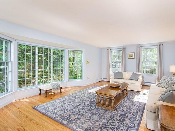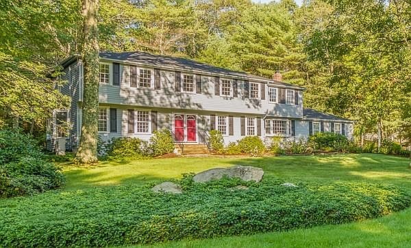Striking center entrance colonial set back on a private, beautifully landscaped lot, surrounded by natural beauty in much desired neighborhood. Close to all: town center, commuter rail to Boston, schools, parks and more! A stunning 2-story foyer welcomes you as you step into this beautifully appointed home w/ spacious rooms & lots of natural sunlight. Formal spaces include an elegant front to back liv rm w/ walk-out bay & a sizable din rm w/ beautiful wainscoting. Relax by the fire in the large family rm or step out to the fabulous sunroom w/ Andersen sliders & h/w flrs overlooking the private backyard. The ideal setting to enjoy your morning coffee or a quiet moment after a long day at work! 5th bedroom can double as a wonderful home office. So many wonderful features/updates: updated baths, master suite w/en-suite bth, hardwood floors, new Andersen windows on 2nd flr, newer roof, freshly painted int/ext, a/c, new garage drs & plenty of storage! Move-in ready!