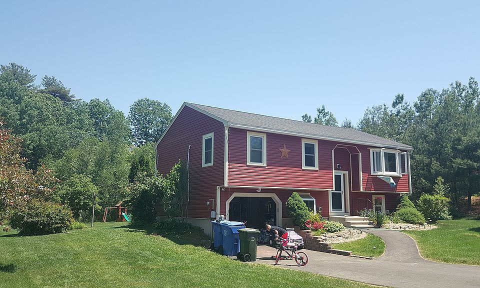 Attractive Home Situated At The End Of Quiet Street Abutting Lovely Wooded Setting; Open Concept Kitchen, Dinning, Living Room With French Doors Opening To Beautiful Sun Room With Hot Tub; Home Offers Whole House Generator, Mitsubishi Electric Heating & Cooling Wall Mounts, Newer Windows, SS Appliances, Recessed Lighting, Sky Light; Lower Level Has 1 Car Garage, Built-In Office Area, Family Room With Gas Stove On Brick Hearth, 1/2 Bath, Large Cedar Lined Closet; Wonderful Opportunity To Live In Londonderry Close To Soccer Fields, Schools, Shopping, Highway, And All Town Has To Offer. BRAND NEW ROOF!!