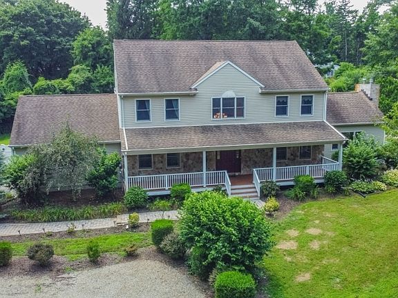 Welcome to this custom-made spacious, sunny 5 bed, 3 1/2 bath Colonial - with sprawling front porch and in-ground pool retreat in the fenced back yard. A 2-story open foyer flows into both living & dining rooms, with direct views of the family room and kitchen. The walls of windows and glass doors from the kitchen and family rooms overlook the terraced patio and in-ground pool, with plenty of grassy area outside the fenced pool for safe additional activities for all ages. The kitchen features a brand new S/S oven, microwave, as well as other s/s appliances, a large kitchen island, and separate kitchen dining space, plus LOADs of cabinet and pantry space. The family room has soaring ceilings, and a gas fireplace, with double French doors to the formal living room. The 1st floor also includes a bedroom/office and powder room. Upstairs are two ensuite bedrooms. The primary bedroom features a large dressing/closet room, an expansive bath with a soaking tub, stall shower, and double vanity. The spectacular custom-made entry hall chandelier lowers for ease of cleaning. The attached 2-car garage, attic, and large unfinished basement with very high ceilings provide loads of additional storage. The laundry and utility spaces are in the basement. The in-ground pool is heated for months of enjoyment and comes with playful color-changing lights to delight your evening/nightime pool guests. The pool equipment and cover come with the house. The pool/game table and custom fish tank can all