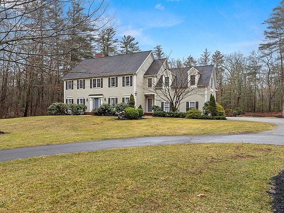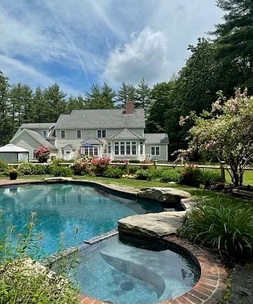This meticulously maintained colonial has it all from soaring ceilings to walls of glass to the mahogany deck. Come view the private backyard setting encompassing the in-ground heated, salt water chlorinated, pool with attached spa, and landscaping designed by Frank Todd. This tranquil property offers a terrific floor plan for the busy family in need of a functional mudroom and finished sunlit basement swing space for an exercise room, craft room, rec room, additional storage and half bath. There is a first floor home office, gorgeous details, 2 fireplaces and mouldings. With ample room for work and play, on a centrally located cul de sac, this 4-bedroom home is ready for its next owner. Sun exposure is great for solar panel addition. Enjoy Boxford's open space, ponds, state parks, top-ranking schools, sports fields, town beach, general store, library and easy access to major routes. Seller can accommodate a quick closing.