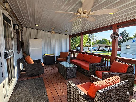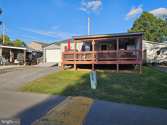 Welcome to Block 33 lot 33 Yogi Bear Blvd (on SEWER) in Riverbends Rv Campground. Riverbend is 400 Acres of SEASONAL recreational campground full of amenities located on the Potomac River in Falling Waters, Wv. OPEN APRIL 1 - NOVEMBER 1 - This is a fun & entertaining community, yet relaxing. This 2 Bedroom 2 Bunk, 2 full Bathroom 2 Refrigerators - Cabin style lot has some welcoming craftsmanship sure to catch your eye. A 14 * 32 Cabin style addition built onto a '07 Americacamp travel trailer. The addition features new tung and grove wood, Lvp floors, paint, light fixtures, windows, cell phone booster inside & out, cabinetry throughout as well as 3 mini splits to keep you cool all summer long and heated when it begins to get chilly. A full spacious bathroom with a stall shower, new 30-gallon hot water heater, approx. 10 * 14 Primary bedroom 1 year old Queen bed with a mini split and window unit for those who love to sleep in the cold...It's perfect. (All the bedroom furniture conveys) The Cabin addition also features a Coffee bar area with a full-size refrigerator and plenty of cabinets. A walk into the camper which has been framed around to be converted to a full cabin, you'll find a 2nd Queen sized bedroom with fan and tv, 2 bunk beds, dining area, a 2nd bathroom, kitchen and a breakfast bar / food prep area. All the Tvs and furniture convey except the sofa, love seat and grill. A walk outside where you are sure to relax or make memories with friends and or family is a 12 * 20 covered porch featuring recess lighting on a dimmer, ceiling fans, fridge, propane firepit, roll down shades and a furniture set. A special 5 * 7 Bump out to the deck was built for the master griller to chef up whatever the heart desires without holding the heat under the roof. Iron grill conveys. Yes, that is a 12 * 21 only 2 year old Metal Garage sitting on a nice concrete pad to house that side by side or golf cart of your dreams. Breaker box has 2 spots to add electric to the garage if you'd like. 2024 Polaris XP1000 with the extra accessories (winch, mirrors etc) may also be purchased separately with this sale. ($20,000) Paid $24,000 last year. Has never been off roading in the riverbend hills. Call today for your personal tour. Approx. 10 miles of Deep water on the Potomac River access for boating, fishing & swimming. Yearly membership ($1,775) plus a $200 initiation fee for new owners, includes water, sewer, electric, trash and the park amenities such as 3 pools, putt putt course, Horseshoe club, Boat club, Poker runs, Trick or Treat, Christmas in July, live bands, basketball court, tennis court, fireworks, car show, Church, restaurant, bar, convenience store (Great food), playground, volleyball, ball field and much much more. Bring your golf carts, water toys and come enjoy life!