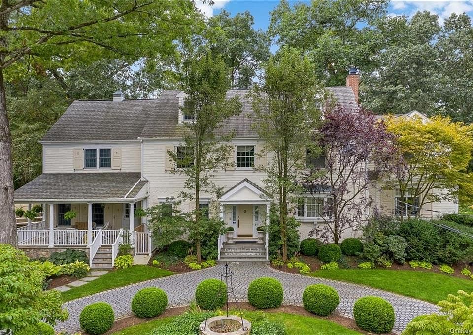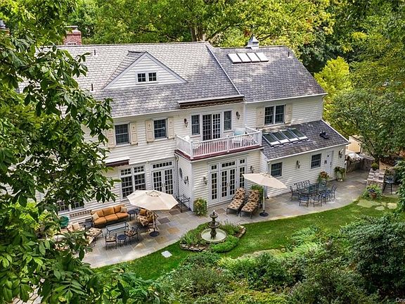 Stunning, sophisticated center hall colonial set on a tranquil, level 0.61 acres on a quiet cul de sac. A soaring 2-story entry welcomes you into this renovated 6BR, 4.2BA with designer touches. Generously proportioned rooms include a gracious living room with fireplace, flowing into a breathtaking great room with a 10.5 ft. ceiling and French doors to rear fire pit terrace or side fireplace terrace. Entertain in the formal dining room or fabulous kitchen with a center island and top of the line appliances, or dine out in the huge screened gazebo. Take the elevator to the 2nd floor, serene master bedroom suite with a walk through closet, full bath with dual vanities, air tub and double shower. Grand office/library with beamed cathedral ceiling and balcony. 3 additional bedrooms with ensuite baths. 2 bedrooms and full bath on 3rd fl. Lower level includes 1,500 bottle wine cellar and rec. room. 3 car heated garage, 45kW generator. Nearly 2000 sq. ft outdoor entertaining space!