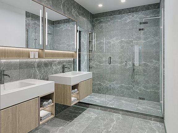 Private terraceIntegrated bloomberg appliancesIn-unit washer and dryerSpa-like bathroomFloor-to-ceiling double-pane windowsSmart climate systemCustom german kitchen