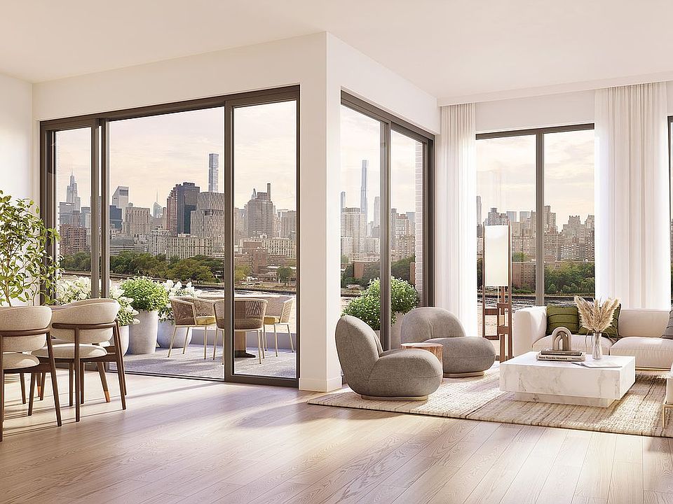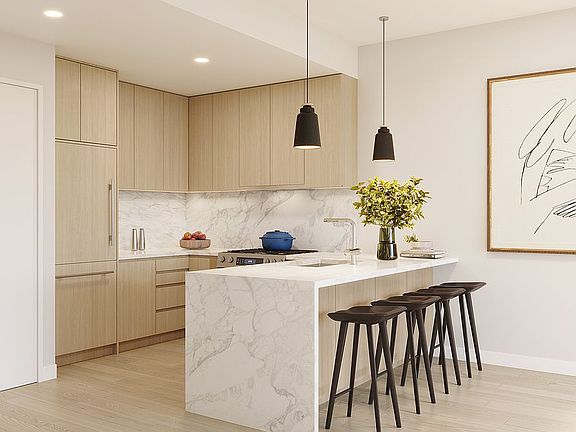 The Marina Astoria is a brand new luxury waterfront condominium nestled in one of the most culturally vibrant neighborhoods in the entire city. With incredible amenity spaces and quick access to Astoria’s main pedestrian strips, Marina Astoria offers residents a best-of-both-worlds living experience. The building has a landscaped courtyard, fitness center, library, pet spa, co-working space, meditation room, children’s playroom, and a furnished rooftop terrace with picturesque skyline views. There is also on-site parking, private storage, and a bicycle room. Broadway and 30th and 31st Avenues are thronged with eateries and nightlife options. Hallet’s Cove Beach, Socrates Sculpture Park, Rainey Park, and The Noguchi Museum are all just down the street, and the athletic fields and public pool in Astoria Park are a few blocks away. Public transportation options include the NYC Ferry and the N/W subway lines. Pets are welcome.