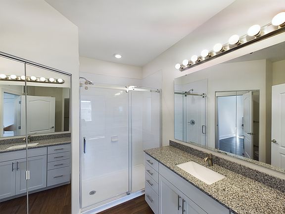 The Slam Dunk Two Bedroom Two Bath Apartment Home #30-203 at Hickory Cottages is an upstairs residence boasting an exquisite layout. The chef's dream kitchen features granite countertops and state-of-the-art stainless-steel appliances. Natural light floods the living space, ideal for relaxation or entertaining guests. The primary bedroom includes a luxurious bathroom with a tiled shower and an oversized closet. The second bedroom is complemented by an adjoining bathroom with an oversized soaking tub. Residents enjoy top-notch amenities including a saltwater pool, outdoor firepits to relax by, and a state-of-the-art fitness center. Your ideal living space awaits!