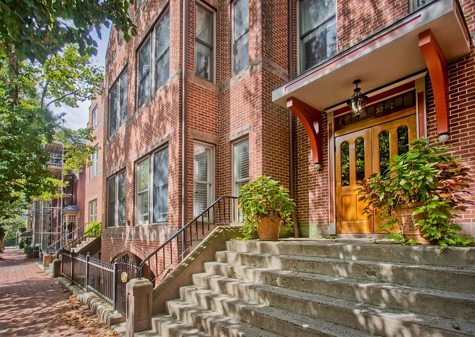 Victorian brownstone living is here in Springfield....you will feel like you are in Boston! Picturesque street lined with lush trees, charming lamp posts and herringbone brick sidewalks. You will love the updated (2 years old) kitchen with granite, plenty of cabinets and all appliances to remain (including washer and dryer). Gorgeous and spacious living room with stunning fireplace and access to the private balcony deck for entertaining. 2 large bedrooms and baths are on 2nd floor with NEW Hardwood floors including master bedroom en suite w/skylights. Lots of light with large windows and great views! Entertain in the open dining area, half bathroom on the main floor and central AC (brand new condenser) provide comfort indoors, and the private backyard with patio area lets you take the party outside. This unique property includes a parking in your off street garage for added convenience in the historic downtown neighborhood. Walking distance to MGM and easy access to 91!