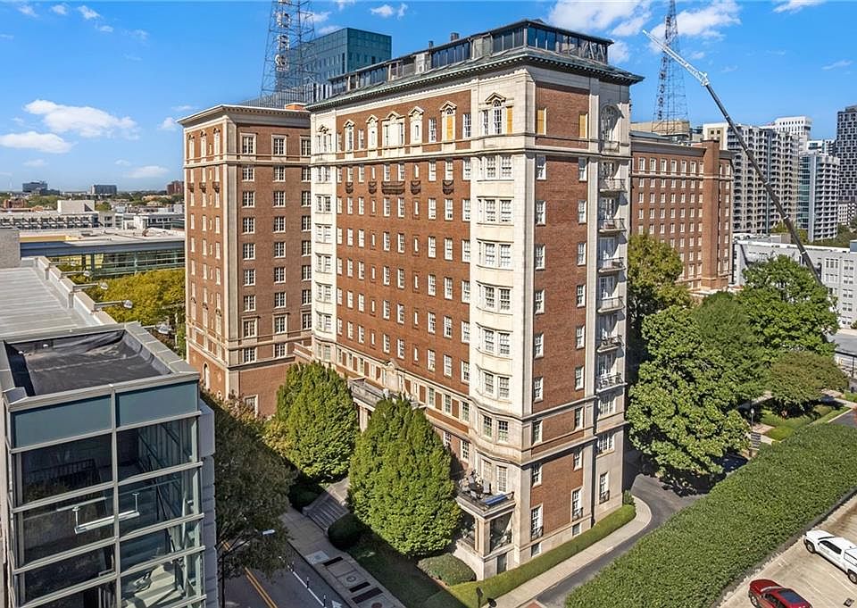 Beautiful historic Biltmore House! Built in 1924, The Biltmore underwent a total renovation and is now listed on the National Register of Historic Places. Each residence is unique…. this residence has 2-levels with a private, extra large, covered patio (a rare feature in condo living) which opens to the living room extending your living space and great for entertaining! The residence has the Master bedroom suite, guest bedroom or den, 2 full bathrooms and laundry on the lower level. The main level has the living area with a decorative fireplace, open kitchen with breakfast bar, stainless appliances, granite counter tops, pantry, lots of cabinets and a Powder Room convenient for you and your guests. The main floor has very large windows with Plantation Shutters making it open and sunlit. The residence has solid hardwood throughout with tiles in the bathrooms. The laundry room has full size washer and dryer. Biltmore House is walking distance to Atlanta's "Midtown Mile" on Peachtree Street, The Fox Theatre, High Museum of Art, Ga Tech, GA State, Piedmont Park, MARTA & much more. Centrally located in Midtown you’re in the mix of everything, yet Biltmore House offers seclusion in the heart of the city. Midtown offers world-class art galleries, entertainment, renowned restaurants, vibrant festivals and fantastic nightlife! Walking distance to 2 Marta Stations makes this location ideal for airport travel! Move-in ready! The HOA includes 24-hour security, Cable TV, Internet, water/sewer, pest/termite treatment, exterior building and grounds maintenance, concierge, trash and gated parking. Please note there is 1 parking space deeded with the unit. It is in the gated garage next to the building.