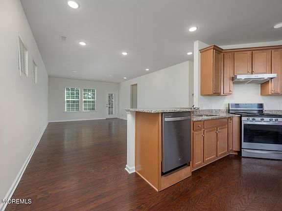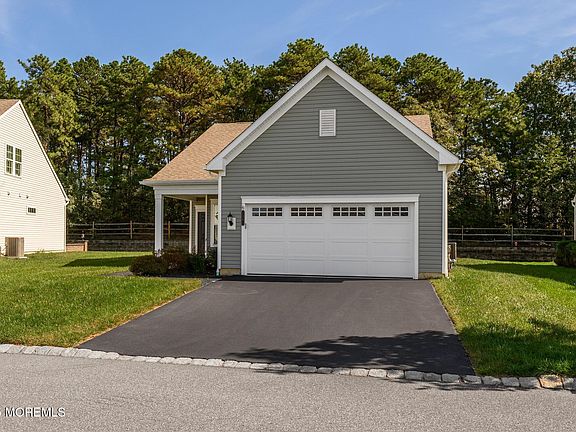 Beautiful 2019 Noir Hill has 2 bedrooms, 2 baths, an office on a private premium wooded lot. There is a spacious eat-in kitchen with 42'' maple cabinets, granite countertops, pantry and center island. The primary bedroom has a large walk-in closet, and bathroom has double sink vanity and linen closet. Among other upgrades, this house offers a paver patio, gutter guards, recessed lighting, hardwood floor and newly insulated garage door. River Pointe is one of the most sought out 55+ communities in Ocean County, offering indoor and outdoor pools, bocce, pickleball, fitness center, clubs, trips and so much more!