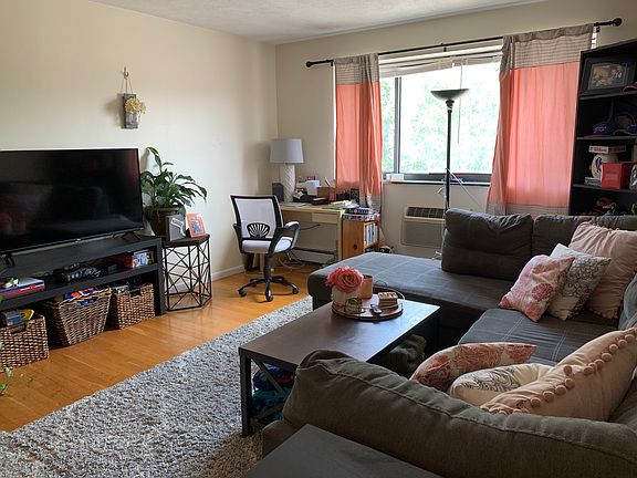 Large sunny unit with great closet space, hardwood floors, and wall unit AC. Includes one parking space! Rent includes heat and hot water. Laundry in building