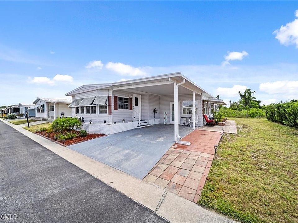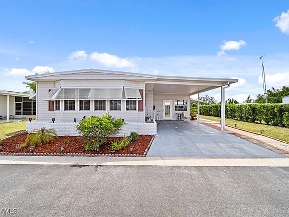 Welcome to Oak Park, a serene waterfront community in the heart of Alva! Perfect for anyone 55 (or better) looking for an affordable home in a prime location. Not in a flood zone and has never flooded! This 2-bedroom, 2-bath manufactured home has been immaculately maintained and features numerous upgrades. As you enter the home, you'll appreciate the blend of Travertine marble tile and laminate wood flooring, which pairs beautifully with real oak cabinets and a kitchen island. Standout features include a whole-house generator for peace of mind in any situation, a complete drywall renovation throughout, Corian countertops, all louvered wood interior doors, a new central A/C unit (2023), and a new Mitsubishi-Trane mini-split in the addition. Laundry is conveniently located inside the home, saving you time and effort. Enjoy an attached garage—perfect for your golf cart or personal workshop.