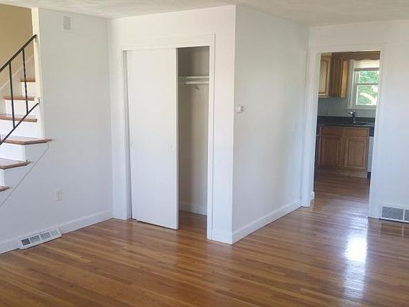 Private entrance, open living room/dining room area. Updated kitchen with maple cabinets, granite counters and stainless steel appliances including full sized dishwasher and pantry. Half bathroom on first floor. Full sized laundry room w/ hookups for electric machines (machines provided in some uinits). Second floor features two full sized bedrooms each with double sized closets. Full bathroom with newer tile throughout and two hallway linen closets. Central AC and forced hot air. Tenant pays gas heat and electric. Water, snow removal and grounds maintenance provided by the landlord. 2 Car parking. Call/text/email (617) 921-8677
