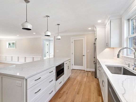 - Features: Bathroom - Half, Closet/Cabinets - Custom Built, Flooring - Hardwood, Dining Area, Pantry, Countertops - Stone/Granite/Solid, Kitchen Island, Cabinets - Upgraded, Exterior Access, Open Floorplan, Recessed Lighting, Stainless Steel Appliances, Wainscoting, Gas Stove, Lighting - Pendant, Crown Molding