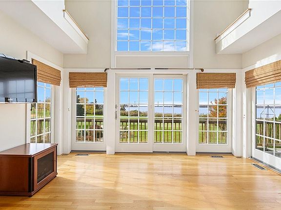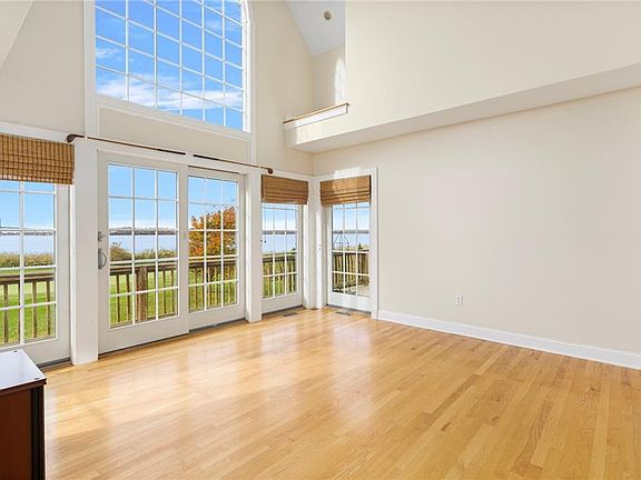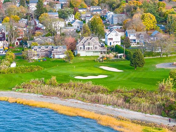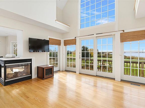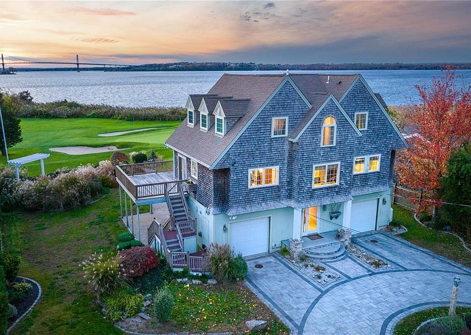 Welcome to Overlook - this three bedroom, two and a half bathroom residence offers unparalleled water views of the iconic Mount Hope Bridge. This property not only provides scenic vistas but also overlooks the 11th hole of the Montaup Country Club creating a serene and picturesque setting. This home was designed around the views. The spacious main floor primary suite has sliders going out to the deck to capture stunning sunset views. Additionally the main level has hardwood floors throughout, a dual sided propane fireplace in the living room and dining room is off of the kitchen and allows for open concept living. An office adjacent to the kitchen finishes the main floor. The home is bright with oversized windows and waterviews from every bedroom. There are two additional bedrooms upstairs that share a bathroom, a separate laundry room and storage closet. The cathedral ceiling in the stairway adds spaciousness and exceptional lighting. Your backyard is a perfect entertaining space with a stone patio and fire pit overlooking the golf course. A short walk to water access, enjoy the coastal lifestyle while being 6 miles to downtown Bristol and the East Bay bike path. 7 miles to Tiverton Four Corners and Groundswell. This home is located in the Common Fence Point community.