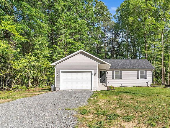 Welcome to your future home in Placid Bay Estates, a friendly golf cart community! This nearly new and ready for you, 1,300 sqft rambler offers three bedrooms and two full bathrooms, featuring luxury vinyl plank flooring throughout. The kitchen boasts stainless steel appliances and granite countertops. Enjoy the durability of a 30-year roof with architectural shingles. The property includes a spacious 20x12 ft garage with a new bosch mini split heat and air system and a cozy 12x12 ft deck for outdoor relaxation. Conveniently located just 25 minutes from Dahlgren, 35 minutes from Bowling Green/A.P. Hill, and 45 minutes from Fredericksburg, this home is ideally situated. Make this charming house your next home!