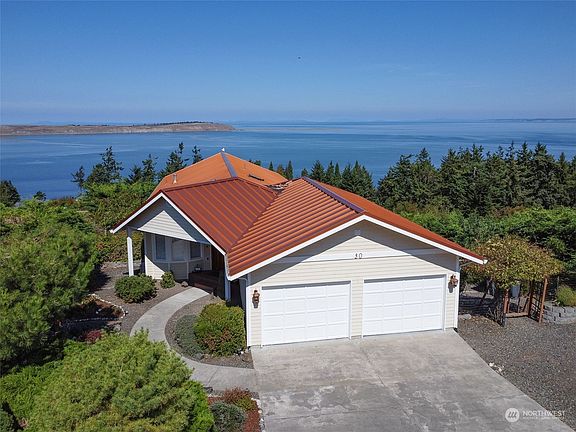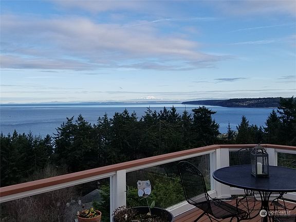Watch cruise ships head for Alaska, the USS Nimitz return from the Gulf, a bald eagle raise her eaglets, and July 4th fireworks in the San Juan Islands, all from the comfort of your living room! Over 1700 square feet of decks, and a huge vaulted great room with floor to ceiling windows. This 3 bedroom, 3 bath home is designed to maximize the light & soak up those huge views from every room. Large open kitchen w/ plenty of storage, ample guest bedrooms, big primary suite w/ it's own fireplace, walk-in closet, & huge primary bath. Extra storage throughout & even a convenient shop space under the home. Enjoy the fully fenced, landscaped backyard with groomed pathways, raised beds and a gazebo. This is a must see home!