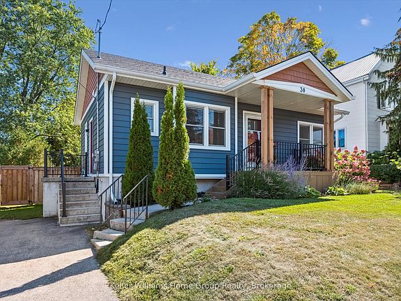 4 BEDROOM EXTENSIVELY RENOVATED BUNGALOW IN EXHIBITION PARK: 30 Barton Street is unlike many of the homes you see on the market today. Located in Guelphs sought-after Exhibition Park neighbourhood, known for its tree-lined streets and strong sense of community, this home is has undergone extensive renovations in the past 5 years. Starting outside, the exterior was comprehensively updated in 2022 with energy shield insulation, new vinyl siding, a fresh roof, portico, soffits, eaves, parging and upgraded front and side doors. As soon as you enter, you'll notice the original hardwood floors in the living room which were professionally refinished in 2021. On the main level, there are two bedrooms, each a great size with new engineered hardwood bedroom floors and a fully renovated main bathroom (2021).The custom eat in kitchen was renovated in 2022 and features premium cabinetry, an induction range, and high-end appliances. The lower level, completely finished in 2021 adds a versatile family room, a modern bathroom and updated laundry with a new washer and dryer. There are two additional bedrooms on the lower level which is great for teens or to provide a little separation. This house has a side entrance and a rear exit which could lend itself to a future accessory apartment or simply versatile living space. The large fully fenced backyard is impressive: the patio was done in 2022 with aluminum railings, a custom shed with electrical and new fence all set within a private, low-maintenance yard. Behind the scenes, key mechanical systems including the furnace, AC, tankless water heater, and water softener (all updated 2021) offer worry-free living for years to come. 30 Barton is in the desired Victory Public School district and is just minutes from Exhibition Park and a short walk to both downtown Guelph and Riverside Park. Don't miss it!