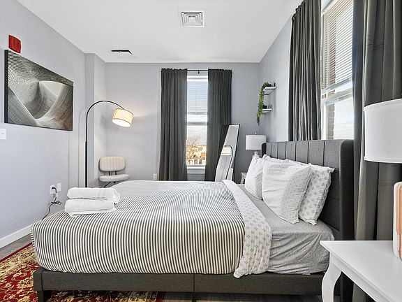 Feel at home in this Everett apartment, conveniently located on the 6th floor with no stairs required. This 1-bedroom apartment features a queen bed and a queen-size pull-out sofa bed, accommodating up to 3 guests. Enjoy the convenience of a fully equipped kitchen and a full bathroom, along with free in-unit washer and dryer facilities. Designed with comfort in mind, this apartment offers a fully equipped kitchen and a cozy living space. The queen bed and queen-size pull-out sofa bed ensure a restful stay for up to 3 guests. Parking is available for one vehicle, with an assigned parking spot. Early check-in and late check-out are available for a small fee and can be requested through our portal, subject to availability. Located in Everett, this apartment offers easy access to some of Boston's key attractions. It's an 11-minute drive to Seaport Boston, 15 minutes to Boston Commons, and just 10 minutes on foot to Encore casino. Educational institutions like Boston University, MIT, Harvard, Suffolk, and Northeastern are within a 15-minute drive, while Tufts is just 10 minutes away. Logan Airport is a 13-minute drive, and Fenway Park is 15 minutes away. This apartment is subject to street noise due to its location. Smoking is not allowed inside the apartment or the building, and any attempt to throw a party will result in immediate termination and potential charges. Pets and emotional support animals are not allowed. A doorbell camera is installed for security purposes.