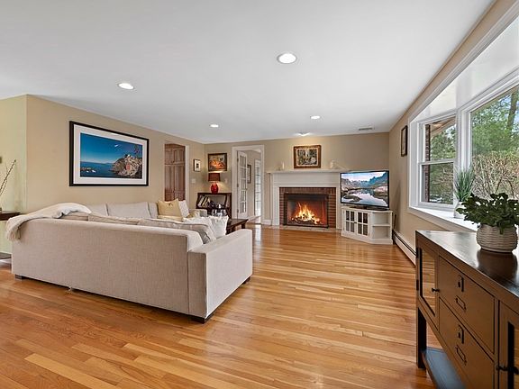 Sought after location near town & highways! Picture perfect updated home w/a flexible open floor plan. Upper level features HW floors, 3 nicely sized bedrooms, abundant closet space, a 3/4 bath in master, & the main full bath. Main floor features an open floor plan w/HW flooring, a family (or living) room w/ bay window & wood-burning fireplace. Generous kitchen with cherry cabinets, SS appliances (w/ 5 burner gas stove), large center island, desk area, bay window. Also on the main level, a formal dining room & private office area (w/exterior access & French door). Garage level has a 4th bedroom w/exterior access and bath that can be used as a guest bedroom, office space, etc. & includes washer & dryer. LL has a playroom w/exposed brick & wood-burning fireplace & additional bonus room. Private landscaped grounds perfect entertaining located adjacent to AVIS land. You will love this desirable West Parish cul-de-sac neighborhood.