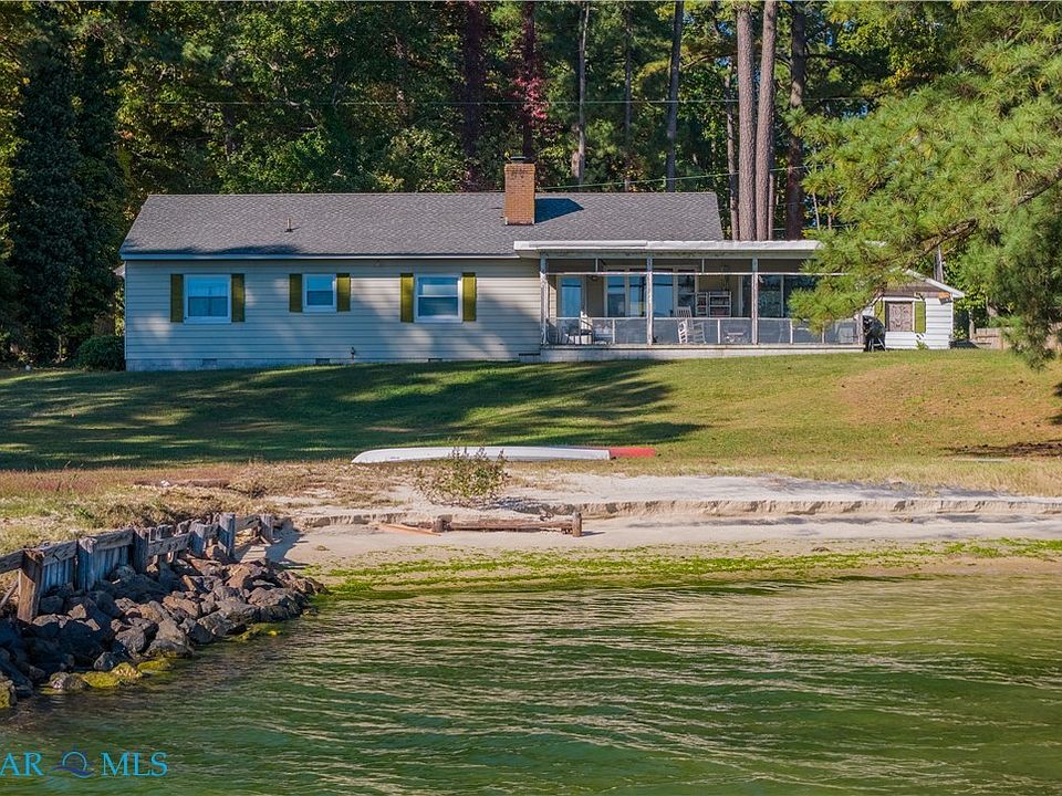 This nostalgic Piankatank River cottage offers one of the area’s most desirable features, a private sandy beach with sweeping, expansive views and more than 200 feet of pristine waterfront. The protected, riprapped shoreline and gentle walk to the water create the perfect setting for swimming, kayaking, and watching passing boats. In addition to the 1.04-acre waterfront parcel, a wooded 0.34-acre lot across the drive provides space for a future guest house or garage. This is a rare opportunity for a buyer to add their personal touch to a classic river cottage with timeless character and endless potential. Inside, heart pine paneling adds warmth to the spacious living room, where built-ins frame a brick fireplace and a large picture window showcases the river. The open-concept layout has a kitchen with traditional pine cabinetry and bar seating. The dining area features brick flooring, beamed ceilings, & sliding doors that open to the screened porch. Ideal for entertaining, the screened porch offers ample space for dining or simply enjoying the tranquil views. The cottage includes three bedrooms & two full baths. The waterside bedroom is bright and filled with natural light and river views, while another waterfront room could serve as an office or an additional sleeping area. Recent updates include the installation of a new Trane heat pump (2024), restoration of the attic and crawlspace, and septic system maintenance. If you’ve been dreaming of a coastal retreat with stunning views and a private beach where you can dip your toes in the sand, this property is ready for you to make it your own.