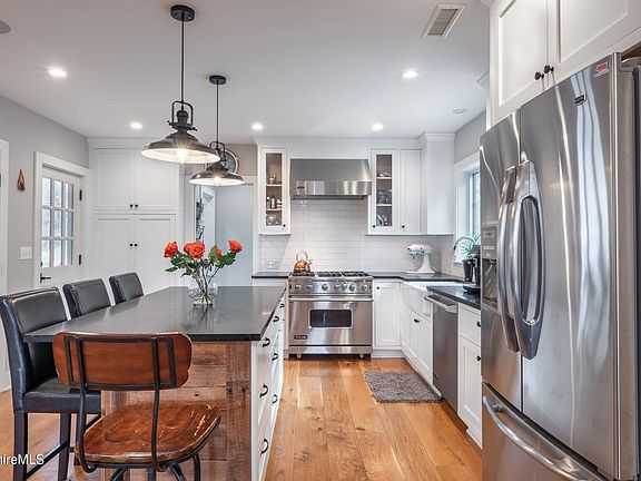 Fully renovated 1912 farmhouse with lovely mountain views. Every part of this house has been renovated, new insulation, plumbing, electric & much more. Large wrap around porch is perfect for lounging outside. First floor has open plan living, dining & kitchen. Viking gas stove in the kitchen with center island. Large mudroom with full bathroom. Also on the first floor, an office with windows towards the back of the property. Off the mudroom is a beautiful stone patio, perfect for the grill. Upstairs is the primary suite with sitting deck & bathroom that has a soaking tub & shower. Two more guest rooms share updated bathroom. Bonus space includes fully renovated attic (tall ceilings) & basement that has radiant heat, lighting & rough plumbing, ready to turn into extra family space.