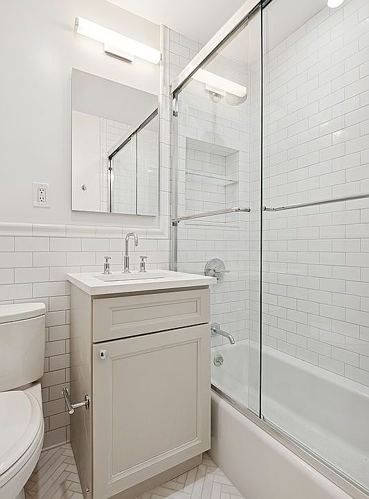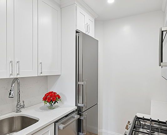 Beautifully renovated one-bedroom apartment with an eat-in kitchen, a separate dining area, and a sunken living room. This floor plan is the largest one-bedroom in the building and tastefully renovated to update and preserve the Art Deco details. New bathroom with herringbone marble floor, Kohler fixtures, and Toto toilet. New eat in kitchen with Bosch dishwasher, Bosch microwave and Bosch stove, and Liebherr refrigerator with Ice Maker. New windows and baseboards. This apartment is turnkey and is move-in ready. No details have been overlooked, with only high-end materials and finishes.