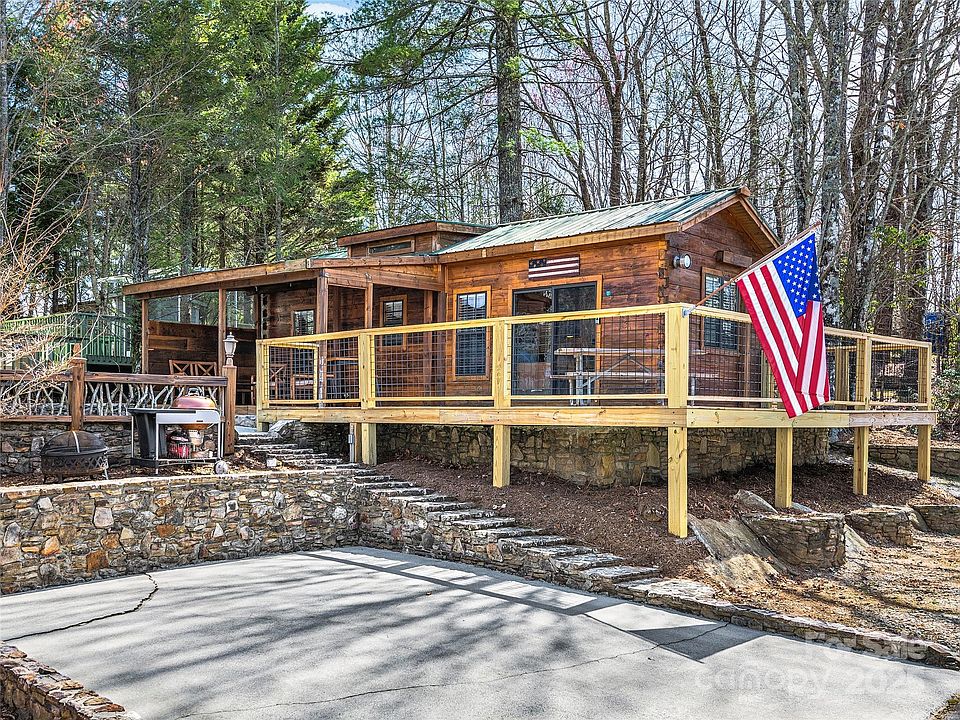 Located in the RV community of Westridge, this furnished, cozy mountain cabin is the perfect getaway! Featuring a 1 bedroom with a king size bed, 1 full bathroom with a stand-up shower, and a loft area with a queen size bed, this is the perfect vacation spot. This site also features an RV pad with hookups! Updates include brand new deck, landscaping, mini split and hardwood flooring throughout. Potential to customize and add a screened-in porch to enjoy during all seasons. Site also features out building for extra storage. Currently set up as a vacation rental with a 2-night minimum stay. Full kitchen equipped with granite counter tops and gas stove. Suitable for Class A Motorcoaches up to 45' with a 50 AMP hook-up. No restrictions on the type of motorcoach allowed. Schedule your showing today!