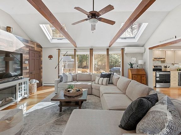 This beautiful updated Colonial boast 3 bedroom & 2 full baths located on a spacious 0.61 acre corner lot in the sought after Ponds of Plymouth neighborhood. Flooded with natural light and spacious floor plan, The open great room features cathedral ceilings with beams, convenient side entry and sliders to the spacious newer deck and fenced-in backyard with shed. Light & bright updated kitchen with center island has adjacent dining room, Enjoy the fireplace in the formal living space with plenty of room for a home office or possible 1st fl. bedroom. 1st floor full bath, The upper level features the primary bedroom w/ separate vanity & sink from the full bath with tub & shower. 2 guest bedrooms, Need even more space? Head downstairs to the heated basement with 2 finished flex rooms & Workshop. Natural gas heat, 4 bedroom septic for possible expansion. Enjoy all that this location has to offer including White’s Pond for swimming, kayaking & fishing. Atlantic CC for golf mins away.