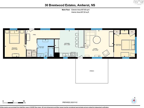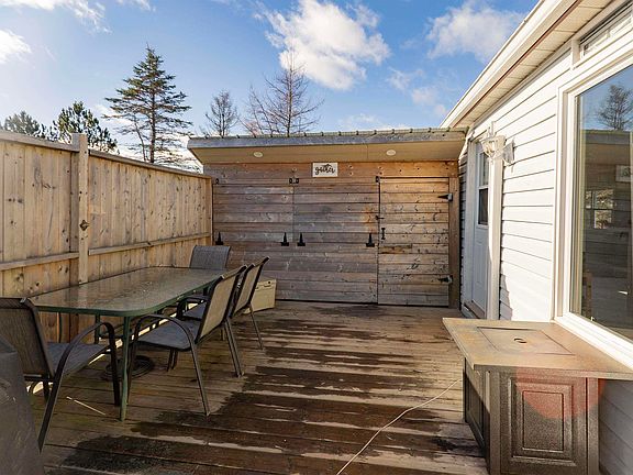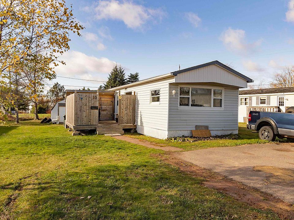 Welcome to 30 Brentwood Estates—an inviting, well-maintained mini-home offering comfort, privacy, and exceptional value. Located in this peaceful Amherst park at the edge of town, with current lot fees of just $213/month, this home provides an affordable and quiet setting. Freshly painted throughout and equipped with a ductless mini-split, the home is bright and move-in ready. The layout opens into a generous eat-in kitchen, featuring ample counter space, room for a dining table, and direct access to the living area visible from the bar height counter and stools. The living room is warm and welcoming, ideal for both relaxing and entertaining. Large windows throughout the main living spaces bring in plenty of natural light. Down the hall, you’ll find a convenient laundry area, a well-proportioned 4-piece bath, and the primary bedroom, the guest bedroom sits at the opposite end of the home, giving added privacy and ample space for a full bedroom suite, along with easy access to closets and storage. Outside, the property features a deck with privacy fencing extending off the main entry—perfect for morning coffee or enjoying fresh air in your quiet surroundings. With an interior area of 837 sq ft and an efficient, thoughtful layout, this mini-home offers surprisingly spacious living with all the essentials right where you need them. Affordable, updated, and privately situated—this is a fantastic opportunity in Brentwood Estates.
