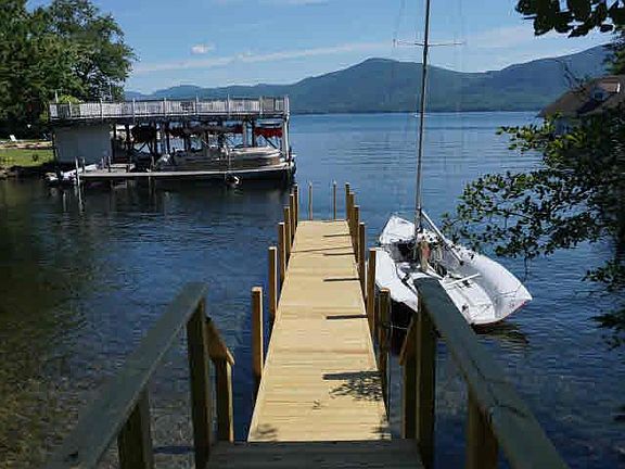 Bolton Landing 3 bed/3.5 bath 2200+/- sf home on 1.2 acres with a 40 ft.deeded dock space on Lake George. This unique property provides everything you need. Spacious, bright and open, the first floor offers a living area, dining area, laundry, 1/2 bath, and bedroom with full bath. The second floor offers a small loft area with large bedroom, walk in closet and full bath. A partially finished basement has a family room, bedroom and full bath. The oversized 26 x 32 detached garage has plenty of room for all your toys. Just a short walk or drive to your deeded dock on Lake George. Lake George Schools.