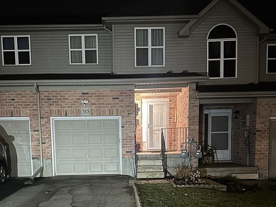 Welcome to 30 Brookfield Crescent, a well-maintained freehold townhome nestled on a quiet, family-oriented street in Kitchener. Offering almost 1,500 sq. ft. of living space, this move-in-ready home features 3 spacious bedrooms, including a primary bedroom with a walk-in closet and large window, and three bathrooms-a full bath on the second level, a convenient powder room on the main floor, and a full bathroom in the finished basement. The functional layout is complemented by no carpet throughout, fresh, well-kept paint, and a partially upgraded kitchen equipped with stainless steel appliances. The finished basement adds valuable living space, ideal for a rec room, home office, or guest area. Enjoy outdoor living in the fully fenced backyard, perfect for kids, pets, or entertaining. Complete with one garage parking space, this home is ideal for first-time buyers, young families, or anyone seeking a turnkey property in a desirable Kitchener neighbourhood.