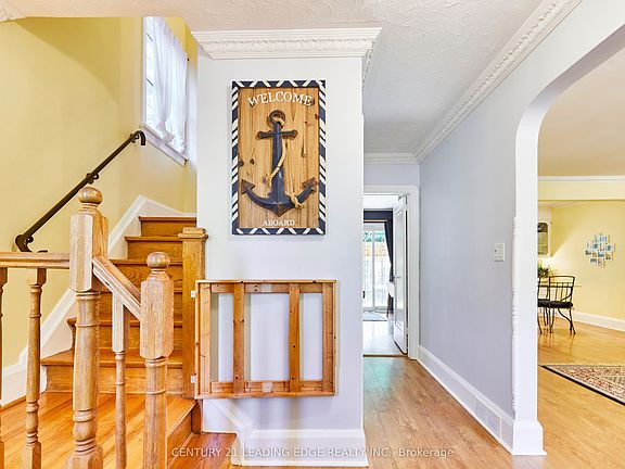 Private side entranceSpacious main floorElegant archwaysCozy gas fireplaceSeparate dining roomEat-in kitchenFully fenced private yard